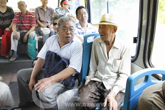 杨洪义老人在121路公交车试运行第一趟,就来到矿村站等候乘车。记者 张帆 摄