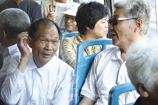 因为同乘一趟公交车,很多乘客慢慢熟悉了起来,大家在一起聊着村里的故事。记者 张帆 摄