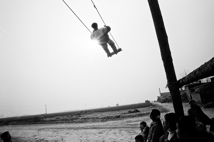 天空,村庄,原野,满是灰土的乡村公路,以及一处我们无法察觉的简陋教堂,一概呈现出梦境中若隐若现的灰暗色调。只有这简陋的秋千在梦中游荡,向着太阳的方向,仿佛永不会到达极点,就像一个乡间的少年对世界的向往。冬天的世界一片萧索,太阳发射出刺眼的光芒,童年的伙伴都已面目模糊,他们却依然在我们的梦中仰望,心怀对自由的想象。