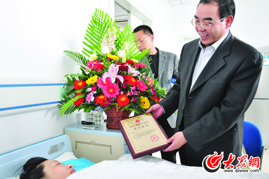 2011年12月5日,是王慧胜回到文登家中休养的第二天,吕明玉早早买上鲜花和营养品前去探望,兑现她的“探望之约”。