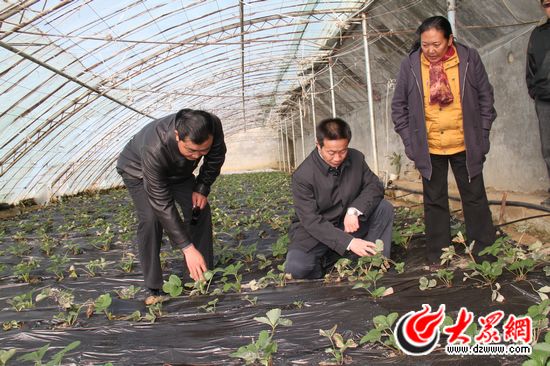 援藏干部视察白朗大棚中新引进的草莓长势