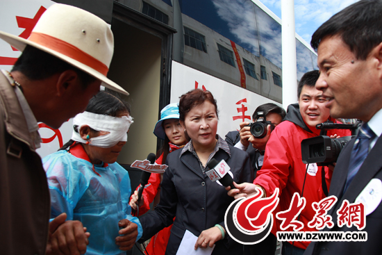 “谢谢!谢谢!”走下手术车,次旺卓嘎首先向在手术车外等待的领导和医生们表达了感谢。在被问及手术的感觉时,次旺卓嘎告诉记者,手术刚刚进行时眼部还是有一丁点疼痛的感觉,但后来很快就没有了,自己非常期盼着明天右眼能重新看到东西。“感谢山东的医生,谢谢。”在丈夫的搀扶下,次旺卓嘎不住的朝人群点着头。