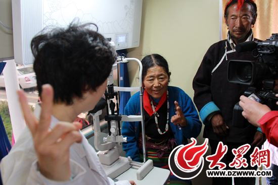 “瞳给……瞳给……”(音译藏语“看见了”)随着纱布被慢慢摘下,次旺卓嘎的右眼缓缓张开,虽然稍微有些红肿,但曾经浑浊的瞳孔如今已变得十分透彻。“一、二、三”看着省立医院眼科中心李运主任伸出的手指,次旺卓嘎随口用藏语回答着,手指头也跟着比划出了相应数字。
