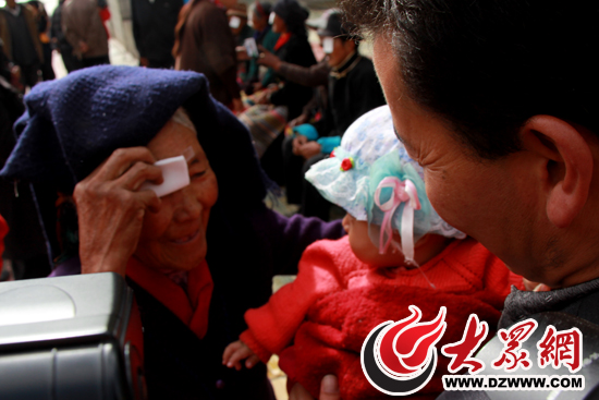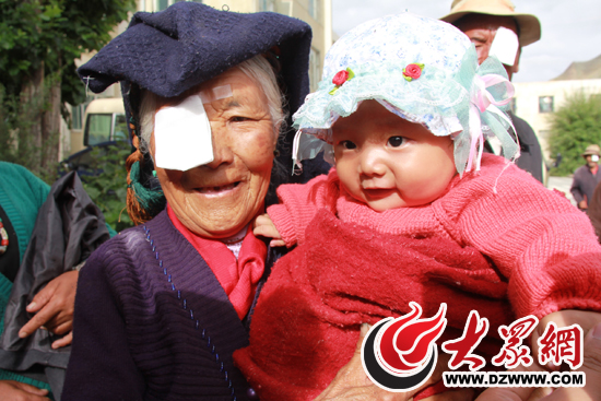 因为患者的年纪多在50岁以上,所以不少藏族老阿爸、老阿妈今天都是由子女陪同来复查。其中,70岁老阿妈巴桑卓玛除了儿子儿媳的陪伴外,10个月大的小孙女今天也被特意带过来见证老人的复明。