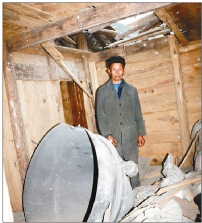 “我和老伴来到谷仓前时,见关闭的门被冲开了。我家的房屋被打断三根瓦梁,一根房屋正梁。谷仓里侧上方砸出一大窟窿。”阳卫汉说。