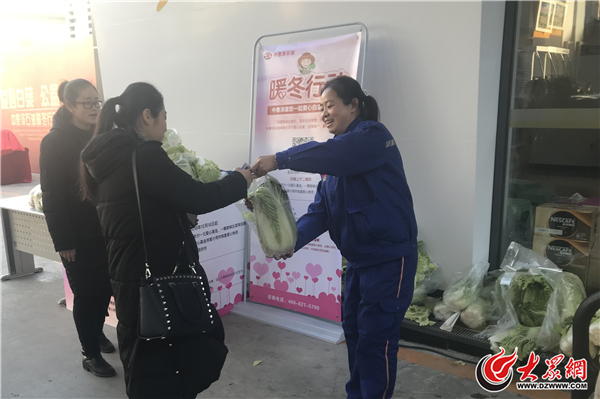 大众网济南讯 (记者 王丛)一棵棵硕大的白菜,鲜绿紧实,一排排整齐的码在中惠泽加油站的一侧,用手按上去,感觉十分结实。12月18日,中惠泽石油“爱心白菜 公益助农”活动在这里展开。