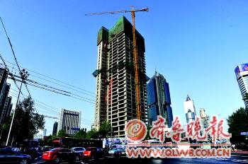 已经封顶的大众传媒大厦。本报记者徐延春摄