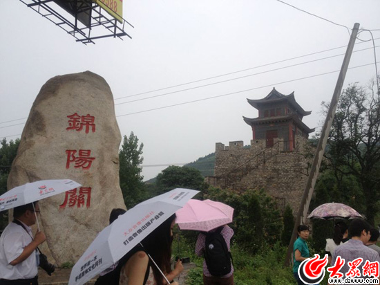 21日,“聚焦美丽山东——第九届中国网络媒体山东行”南线采访团来到中国最古老莱芜齐长城锦阳关段。(大众网记者 李兆辉摄)