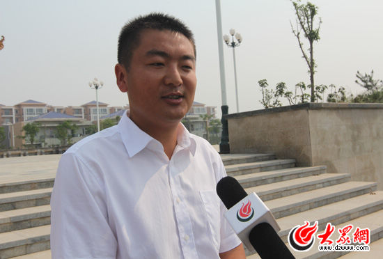 东明玉皇集团总经理王胜伟接受大众网采访,他说,未来玉皇新村要让这里所有的村民都住上别墅。(记者 郭豪摄)