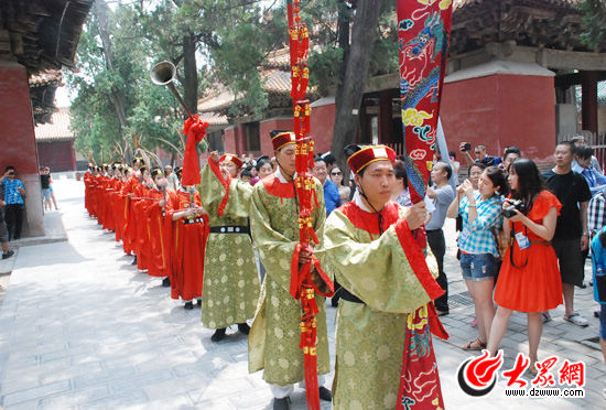 工作人员着古装参加祭孔大典。(记者 郭豪摄)