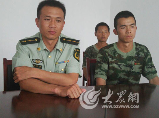 武警临沂支队直属大队一中队队长井跃华(左一)说起张楠,几度泪下。