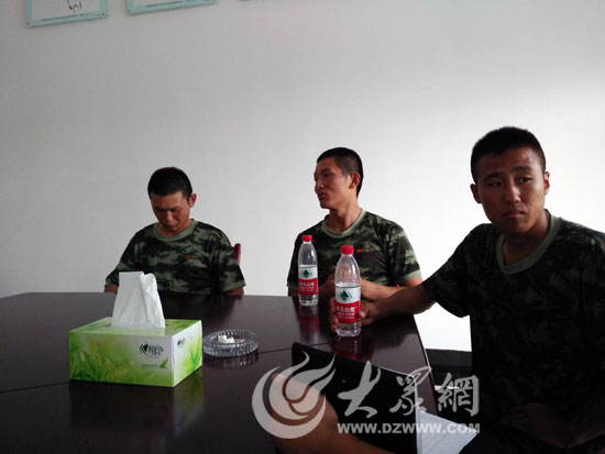 战友姜飞(右一)强忍泪水,向大众网记者讲述最后一次见张楠的情景。