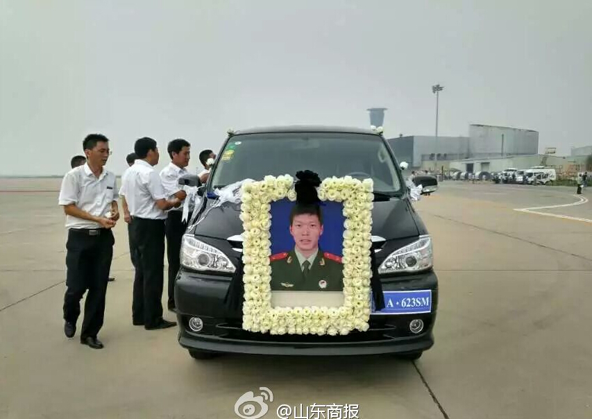 运送张楠烈士灵柩的飞机将于今晚7点40分到达济南