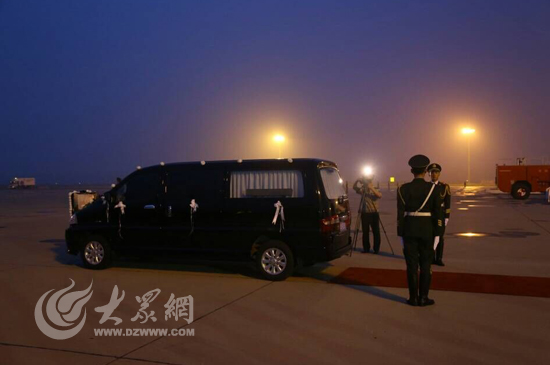 迎接张楠同志遗体的灵车已在济南遥墙机场等候