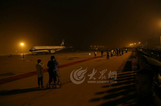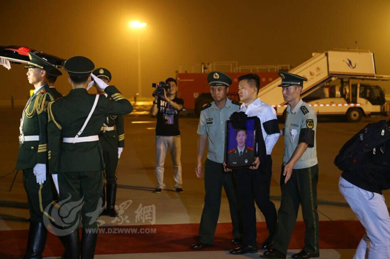 大众网济南8月1日讯(见习记者 赵兵 亓翔)19时54分,载着张楠烈士灵柩的飞机缓缓降落在济南遥墙国际机场。