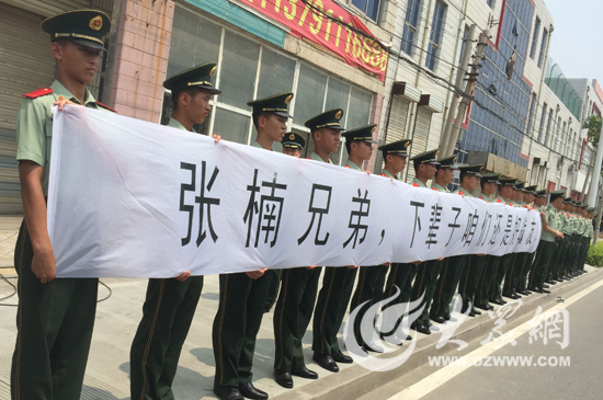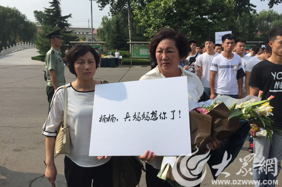 兵妈妈朱呈镕手持纸板:楠楠,兵妈妈想你了。