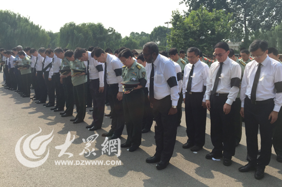 在悲恸的哀乐声中,参加告别仪式全体人员肃立,向张楠烈士默哀三分钟。