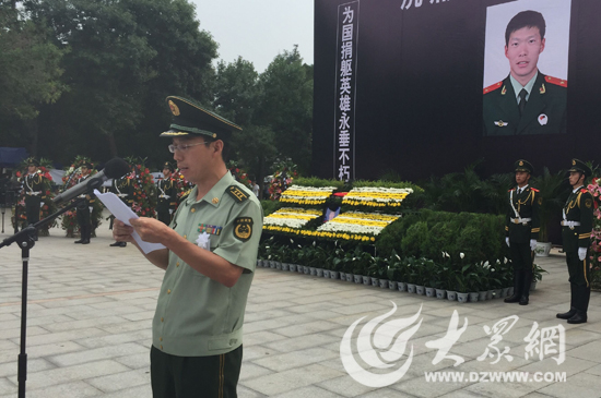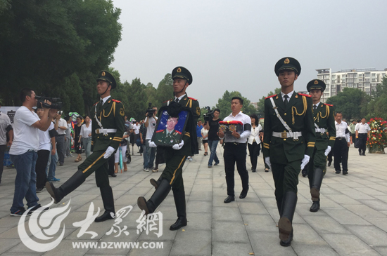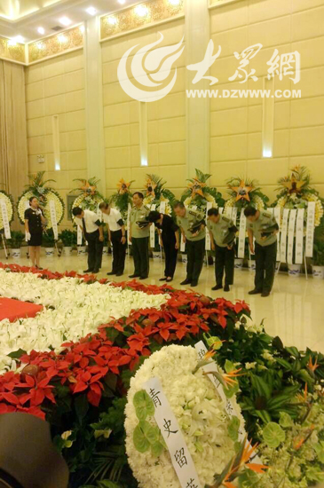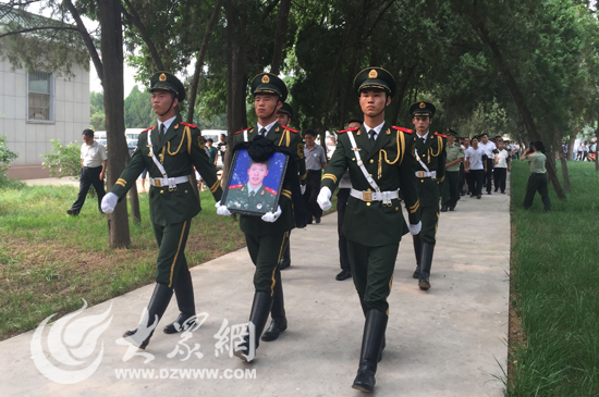 大众网济南8月1日讯(见习记者 赵兵 亓翔)20点30分,武警部队副政治委员张瑞清宣布起灵。在军乐声中,礼兵抬起灵柩,缓步走向灵车。