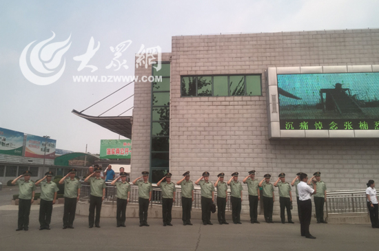现场全体人员脱帽,向张楠烈士三鞠躬。