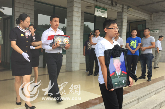张楠烈士家属手捧骨灰盒送上灵车 返回烈士家乡
