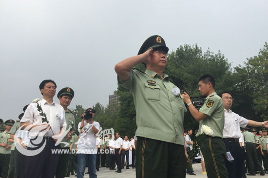 党政军和社会各界代表、张楠烈士的亲属及家乡领导同志等向张楠烈士三鞠躬。