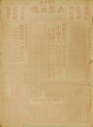 1949年10月2日一版,新中国成立版面