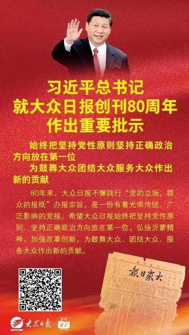 2018年12月31日,习近平总书记就大众日报创刊80周年作出重要批示。全文如下: