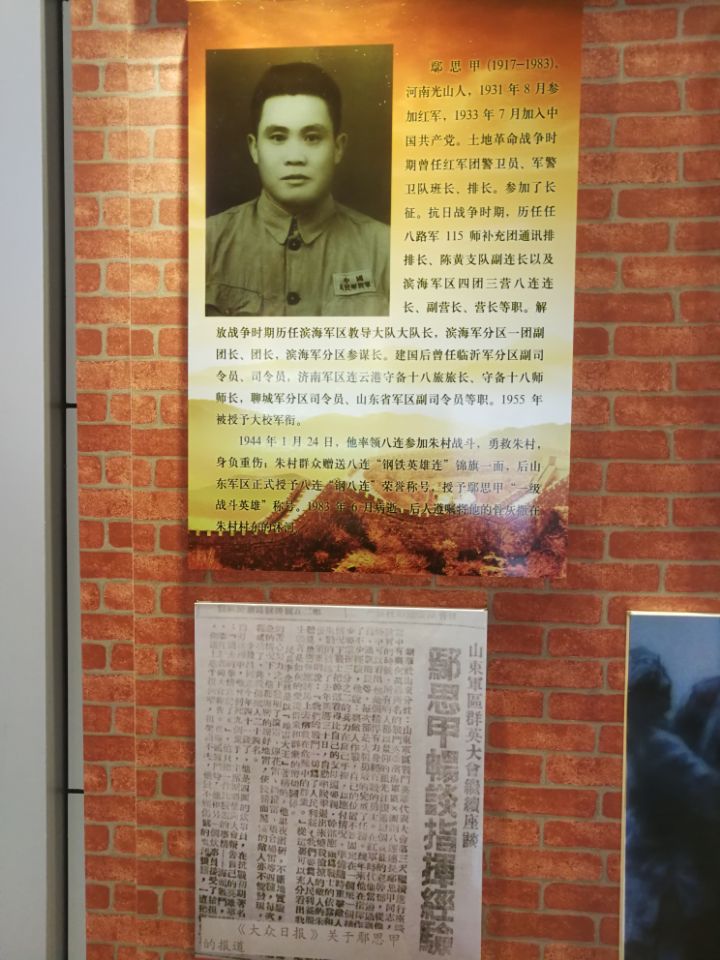 朱村抗日纪念馆中展出大众日报相关报道版面
