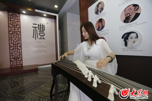 除了非遗视觉盛宴,现场宛转悠扬的古筝曲声始终萦绕在嘉宾们耳旁。《高山流水》等一曲曲古筝演奏都是出自山东菏泽古筝名家祝妍芳之手。山东古筝乐是中国古筝重要的组成部分,有着悠久的历史,在长期流传过程中,逐渐形成了华丽柔美、刚劲明亮、音韵浓郁的艺术特点,在全国各筝派中具有鲜明的特色。
