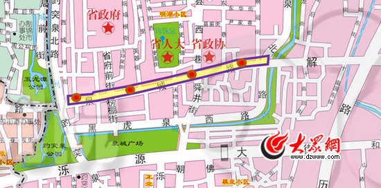 此外,记者了解到,今年3月份,济南市市政公用事业局曾召开建设管理工作会议,会议上提出,今年8月底前确保完成泉城路整修和三大名胜区范围内步行与自行车系统建设工程,为创建5A景区创造条件。