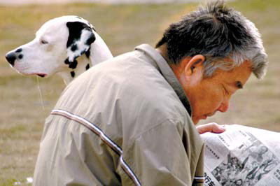 一位老人在爱犬的陪伴下度过午后时光。打狗是对如何处理个人情感与社会公众利益冲突的艰难考验。颜士然摄