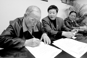 图为张瑞和在授权书上签字。 欧阳晓菲摄