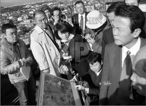 日本外相麻生太郎双眉紧锁望着远方,去年12月26日,麻生专程前往东京附近的美军基地视察,并同当地政府领导人会谈,以寻求地方政府对驻日美军整编的支持。美军劫杀日本妇女事件,将使亲美的小泉政府遭遇更多地方阻力。