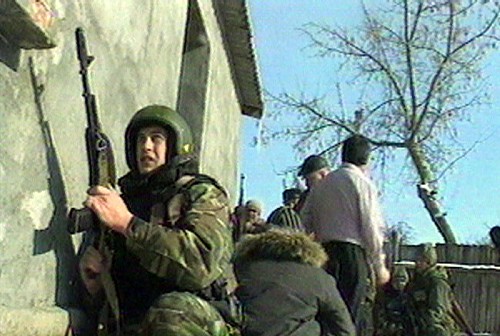 从俄罗斯多家电视台播放的电视画面上可以看到,一部分训练有素的特种部队官兵在装甲车的掩护下,静悄悄地向匪徒藏身的民宅逼近;还有的特种兵则就地趴在雪地上,机枪对准匪徒藏身的民宅,激战一触即发。不久就传出密集的枪声。