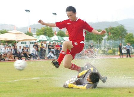 图为广东警方(红队)与香港警方运动员进行足球比赛。文/陈嘉杨卫平图/景国民