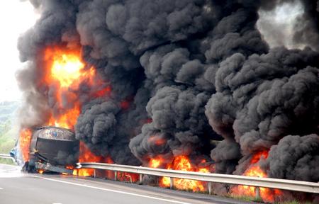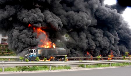 昨日下午2时左右,一辆油罐车行至达渝高速路158公里处与一辆轿车迎面相撞,随即发生爆炸并猛烈燃烧,导致达渝高速公路双向交通被迫中断两小时,一人受轻伤。