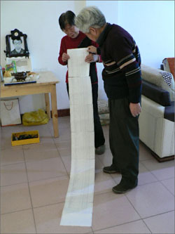 李东的父母拿着两米长的治疗总账单 西部商报/图