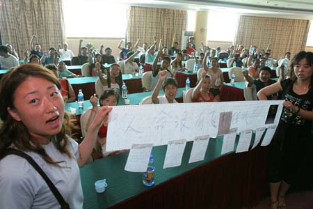 随后,南航昨日值班经理杨寅赶到酒店处理此事。乘客们联名对南航提出了三点要求,首先要求南航对乘客滞留赔礼道歉,其次要尽快换飞机让他们返回沈阳,另外希望能得到一定的物质补偿。