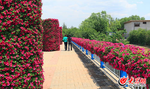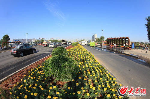 工作人员还对经十西路两侧绿地进行整理、铺种移植等,栽植地被小龙柏、金叶女贞以及月季、蔷薇、冬青球等。经七路口、大金路口等4处节点也通过营造地形、大树组景、配置景石、景松、花卉布置等园林手法,营造了沿线富丽祥和的园林新亮点。各节点的花卉布置独具匠心。腊山立交、兴济河、腊山河三处桥体悬挂的花箱,扎制的花柱、花钵、花球、花树增添了喜庆的气氛。大型花卉立体造型也赚足了大家的眼球,阳光新路路口《魅力槐荫》、槐苑广场《五彩生活》、兴济河桥《幸福槐荫》、腊山河桥《喜庆连连》、担山绿地《风驰电掣》五组造型形成经十路连接有序、热烈喜庆的花海气息。