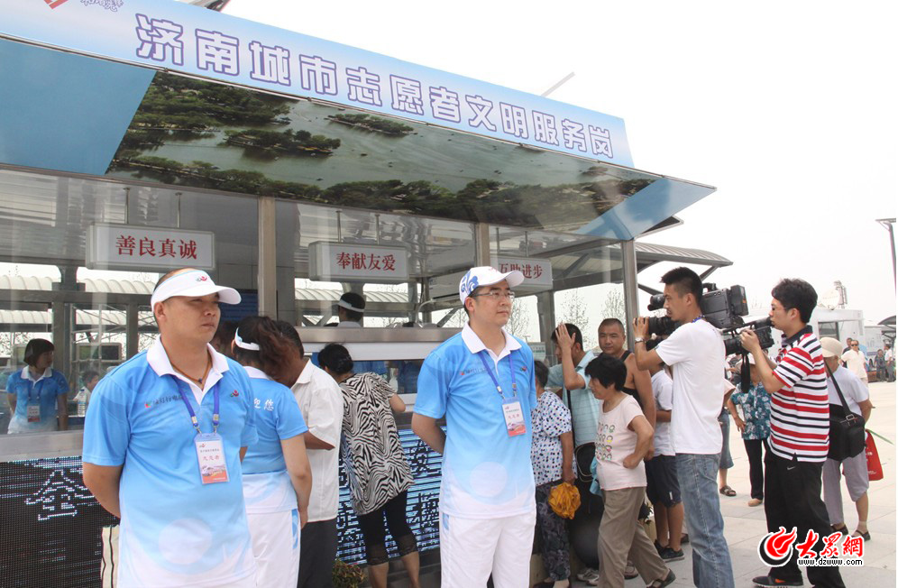 今天下午,济南的气温达到35摄氏度,岗亭内的志愿者向前来乘车、参观的市民免费发放饮用水,赢得了众人的一致赞扬。