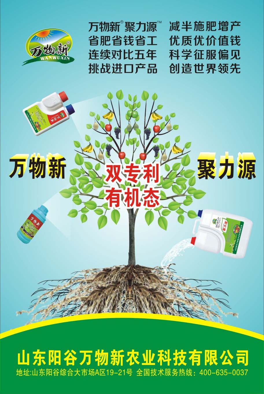 万物新喷施肥和聚力源冲施肥都是在获得国家发明专利的基础上再升级换代的创新产品,两项产品均富含有机螯合态氮、磷、钾大量元素和中微量元素,全腐熟有机精华和高能量复合微生物菌群,它们相互包容,协调平衡,合力倍增,形成速效性、持效性和高效性兼备的多功能全元有机生物肥。
