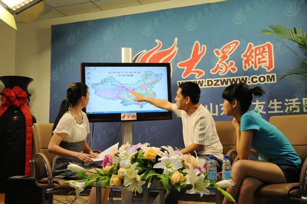 大众网特约记者施晓亮在触摸屏上讲述行程路线