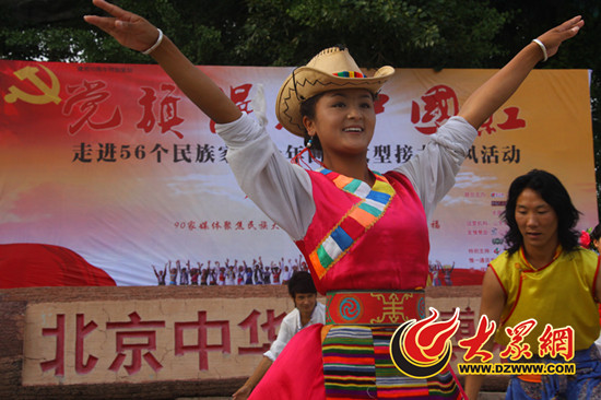 大众网北京6月24日讯(记者 刘国栋)为纪念中国共产党建党90周年,由大众网、中国民族报发起,全国90家网站共同主办的“党旗漫卷中国红——走进56个民族大型接力采风活动”将于6月25日9点30分在北京中华民族园正式启程。昨天,采访团成员已经全部抵达北京,启动仪式现场一切准备就绪,由56个民族青年表演的歌舞《中华大家庭》正在紧张彩排中。
