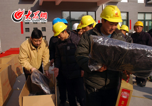 农民工兄弟领受赠棉衣