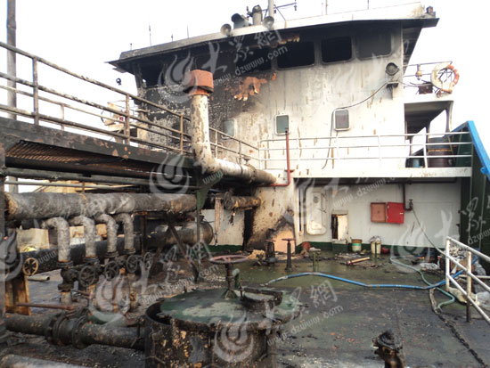 江苏籍油轮丽阳号爆炸后的情景。(本网记者摄)