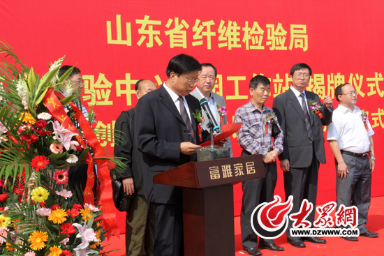 山东纤维检验局局长张善军在揭牌仪式上发言。