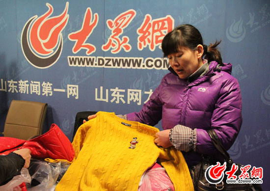 大众网济南12月26日讯(记者 王磊 盛堃 马鑫)连日来,由大众网、济南婴贝儿母婴购物广场、山东公益联合发起的“千家爱百家衣”活动引起了全省网友的广泛关注。今天上午,济南市一家爱心企业的两位职工代表手提4大包棉衣来到大众网编辑部,把40余件“爱心衣”捐给山里的孩子们,其中的王女士告诉记者,这个活动是他们经理群发手机报告诉大家的,从2008年汶川地震至今,他们公司员工每年都参加一到两次爱心活动。