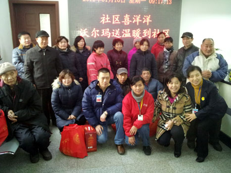 1月16日上午,沃尔玛济南泉城路店“社区喜洋洋”活动的志愿者们来到了后坡社区,给低保户和孤寡老人们送来了米、面、食用油等生活必需品,并提前给社区群众拜年。 记者 冯炜程 通讯员 张梅云