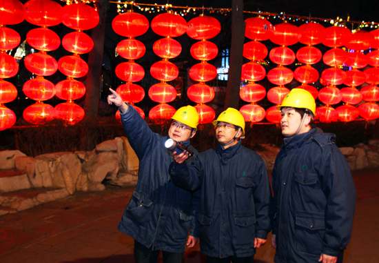 让灯会的每盏灯都亮起来!随着趵突泉园林的扩建,趵突泉的花灯规模也越来越大,这一任务也变得愈发艰巨。已经参加过一届花灯保电任务的曹杰飞说:“为了确保灯会期间的花灯都亮,今年济南供电公司比去年提前半个月就开始着手准备灯会保电方案,对重点部位特别维护,重点线路特别巡检,确保灯会期间用电万无一失。”