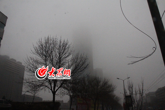 14日上午,济南市区的降雪逐渐停了下来,大雾开始弥漫整个市区。(赫洋 摄影)